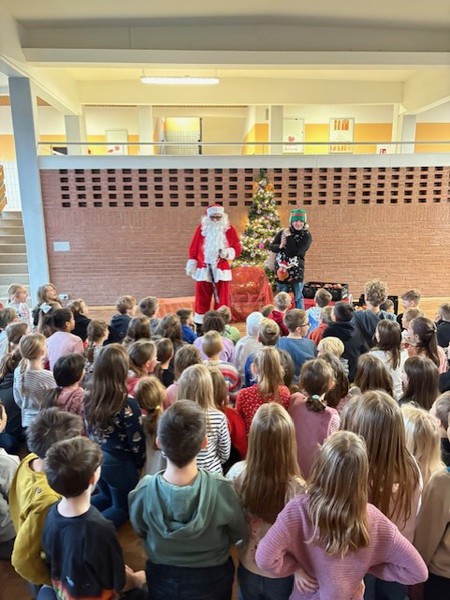 Am 1. Dezember traf sich die gesamte Schulfamilie zu einer ökumenischen Adventsandacht in der Aula. Dort erfuhren die Kinder, wie der Adventskranz erfunden wurde und durften die Mitte mitgestalten. Gemeinsam zündeten sie „musikalisch“ ein Licht an gegen die Einsamkeit, gegen Gewalt und Streit, gegen Gleichgültigkeit und für die Gerechtigkeit. Den Abschluss machte der Schulchor mit dem Song vom „Wichtel Tomte“.